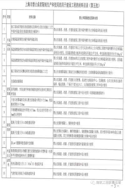2020年9月30日,上海市住房和城市建設(shè)管理委員會關(guān)于公布《上海市禁止或者限制生產(chǎn)和使用的用于建設(shè)工程的材料目錄《(第五批)》的通知