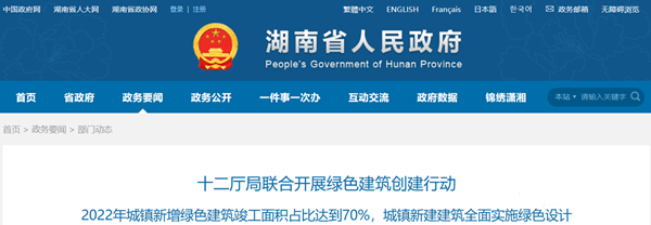湖南12廳局發(fā)文 | 2022年綠色建筑竣工達(dá)70%