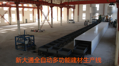 生產(chǎn)該種產(chǎn)品,工藝流程不同的地方就是在生產(chǎn)泡沫混凝土砌塊的基礎(chǔ)上,增加下料分流裝置,將料漿分別流入苯板與苯板之間的縫隙;增加一個(gè)固定苯板的裝置,當(dāng)發(fā)泡料將灌注到模具里面發(fā)滿之后,就要將固定苯板的裝置提出模具;該種生產(chǎn)工藝既可以采用化學(xué)發(fā)泡的方法,也可以采用物理發(fā)泡的方式。