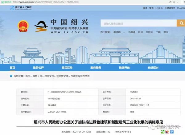 (二)積極推進裝配式建筑發(fā)展。保障性住房、政府投資或以政府投資為主的新建公共建筑項目全部實施裝配式建造;紹興市中心城區(qū)出讓或劃撥土地上的新建項目全部實施裝配式建造;其他區(qū)域新建裝配式民用建筑占新建民用建筑比例達到30%以上,且逐年提高比例;到2025年,全市裝配式建筑占新建建筑比例達到40%以上。
